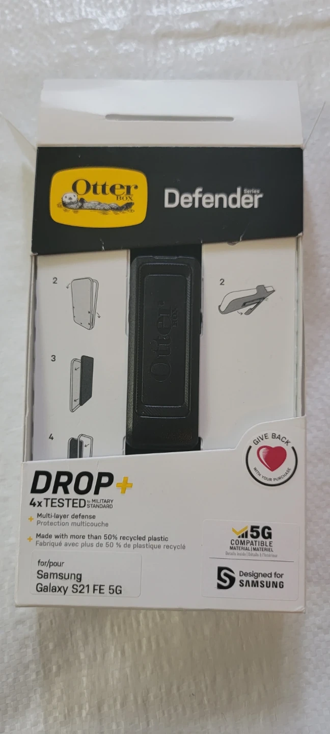 This OtterBox Defender Series case offers multi-layer defence with 4x tested military standard protection. It's made with more than 50% recycled plastic. Designed for Samsung Galaxy S21 FE 5G.