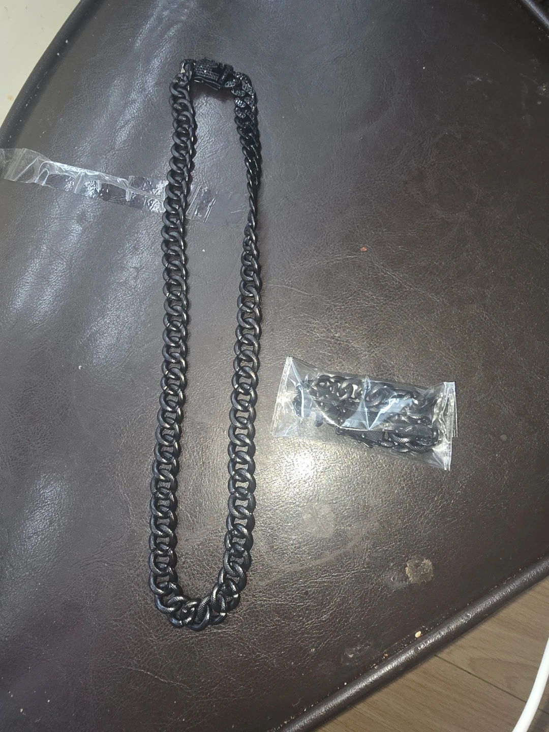Brand new black iced Cuban link necklace and bracelet set. This matching set has a hip hop streetwear style with a high shine finish. Bracelet is still in original plastic packaging. Set was only opened for pictures.