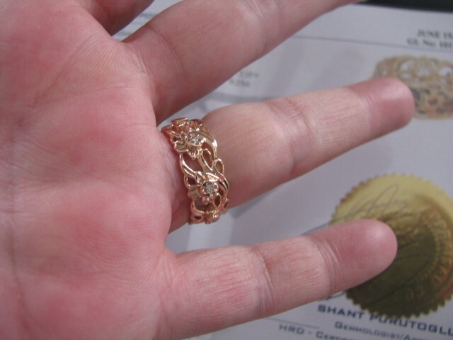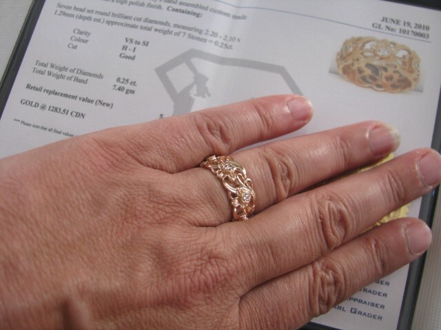 14k Yellow Gold Ornate Custom Band with Accent Diamonds