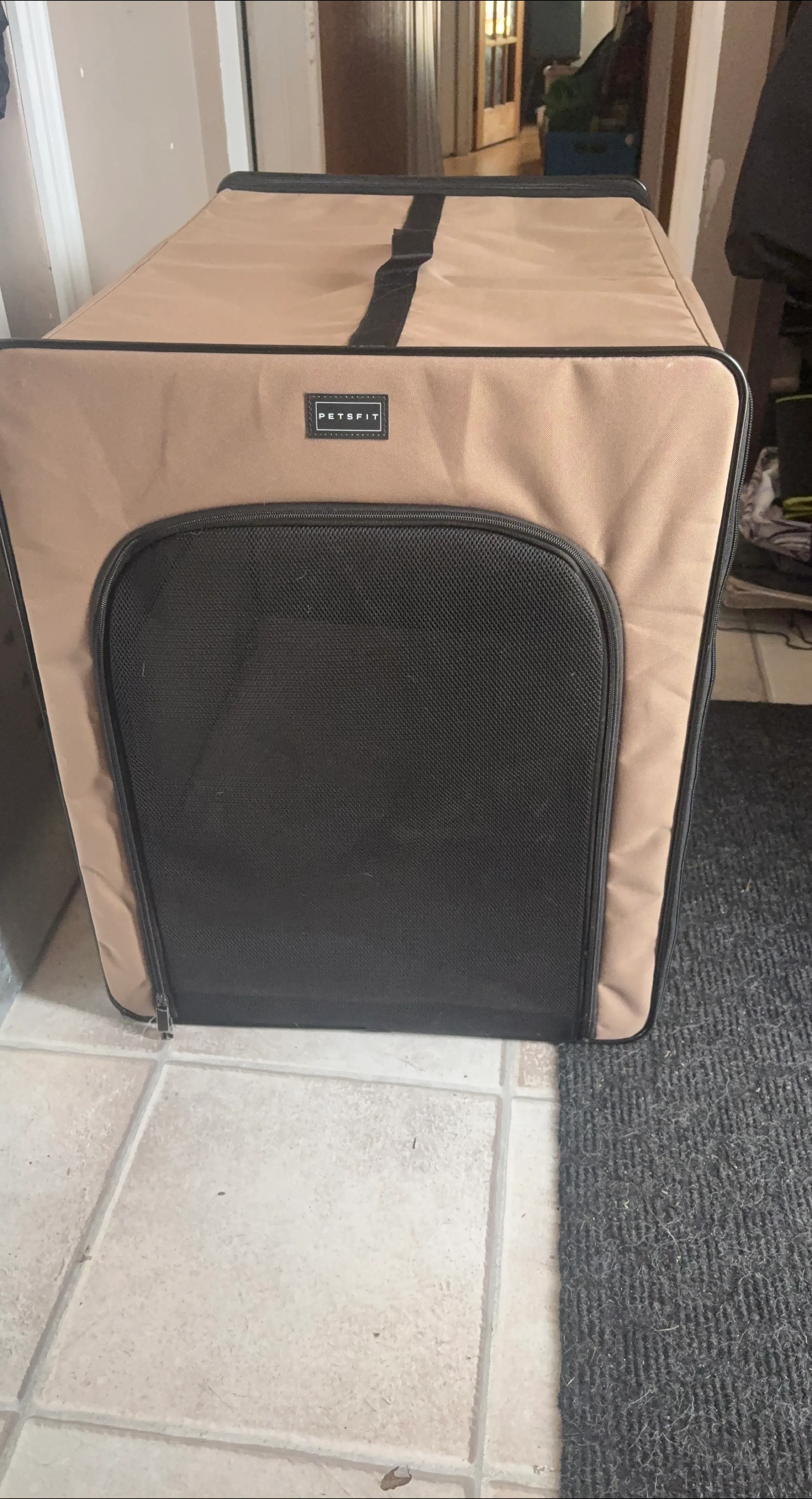 Selling a Petsfit portable pet crate in great condition! It's a collapsible soft crate, perfect for travel or home use. The crate has a mesh door and sides for ventilation, and it's easy to set up and take down. Your furry friend will love having their own little space!