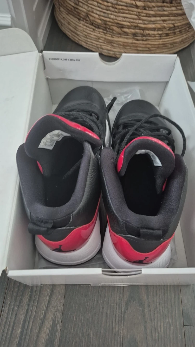 Black and red Nike Air Jordan Max 200 sneakers. Includes original box. These shoes feature a leather and synthetic upper with a rubber sole.