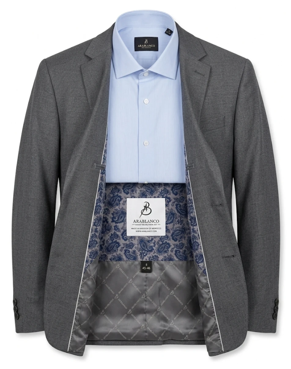 A traditionally unique piece handcrafted from premium Moroccan fabric. This suit blends artisanal heritage with a modern tailored silhouette.