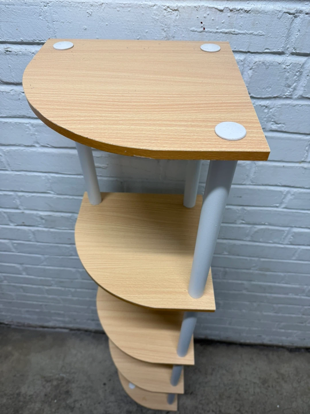 Selling this light wood color 5-tier display corner multipurpose shelf
