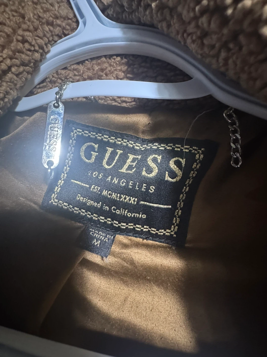 Gorgeous Guess teddy coat in a rich brown colour. It's a size medium and features a cosy, fuzzy exterior with a silky interior lining. Double-breasted with stylish gold buttons, this coat is perfect for keeping warm on chilly days!