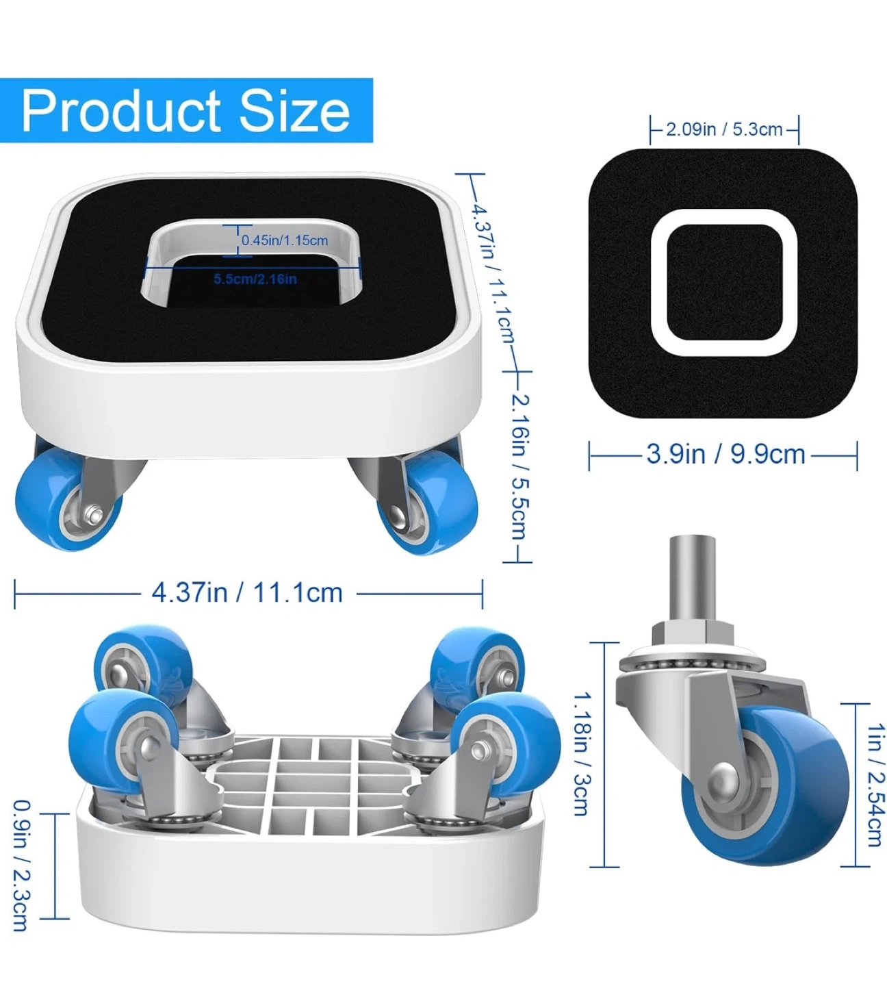 * 360-degree rotation rubber wheels