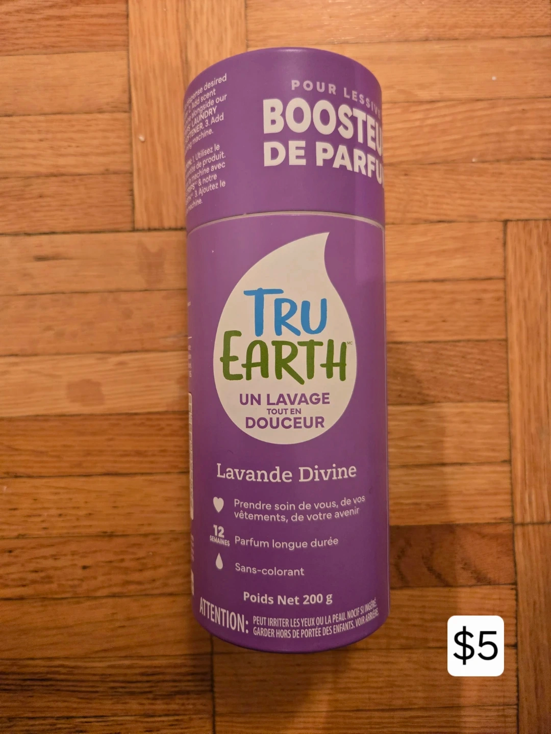 Tru Earth laundry booster in Lavande Divine scent. It provides long-lasting fragrance. This is a colourant-free formula.