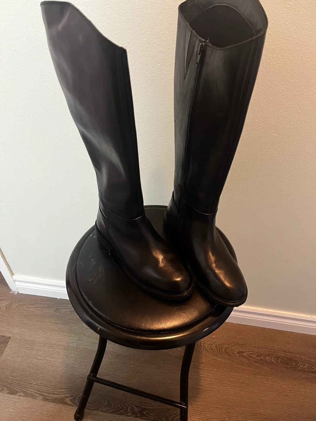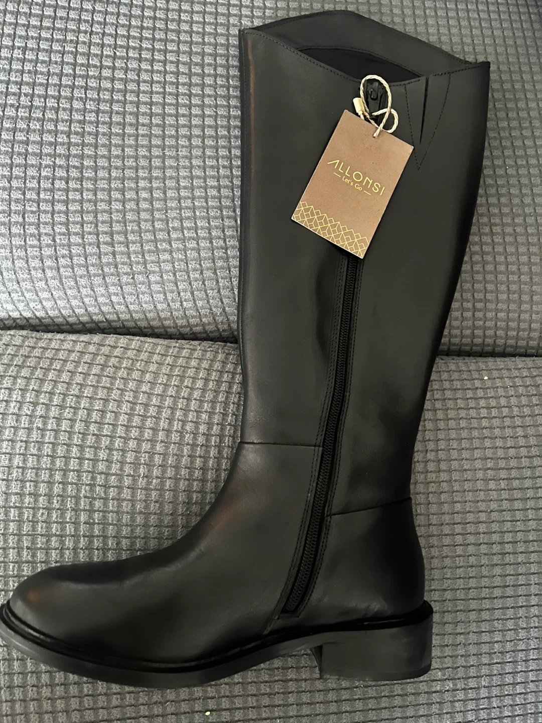 Allonsi Bronya women's leather long boots in black. Crafted from fine Italian leather with a side zipper closure. These boots are knee-high.