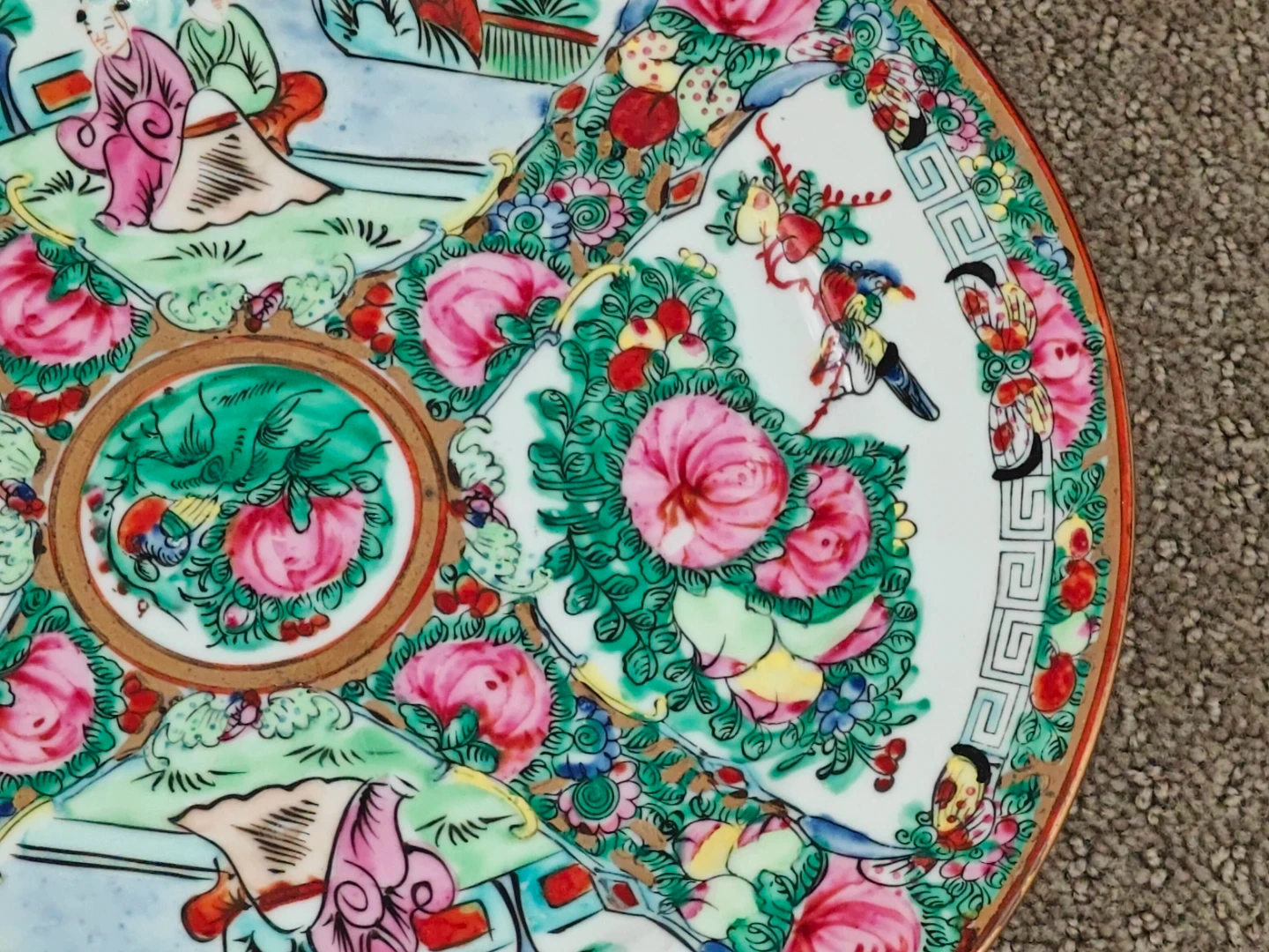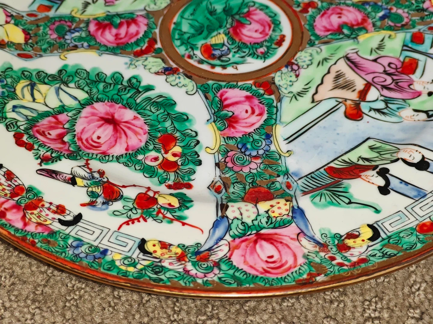 I am selling a Authentic Asian Vintage Canton Famille Rose Medallion Hand Painted Decorative Porcelain 10" Art Plate - Mid-20th Century in excellent condition. No chips or cracks on the plate. Add a touch of timeless Chinese art to your home with this magnificent vintage Canton Rose Medallion plate. This stunning 10.25-inch decorative piece is in excellent, pristine condition, showing no chips, cracks, or signs of wear. Its vibrant, hand-painted details and radiant gold gilt are perfectly preserved.