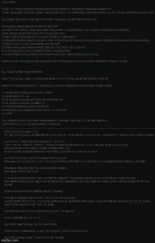 SOME ITEMS ARE UNTESTED SOME ITEMS WORK, FULL LIST SEPARATED WITH UNTESTED ON TOP TESTED WORKING ON BOTTOM