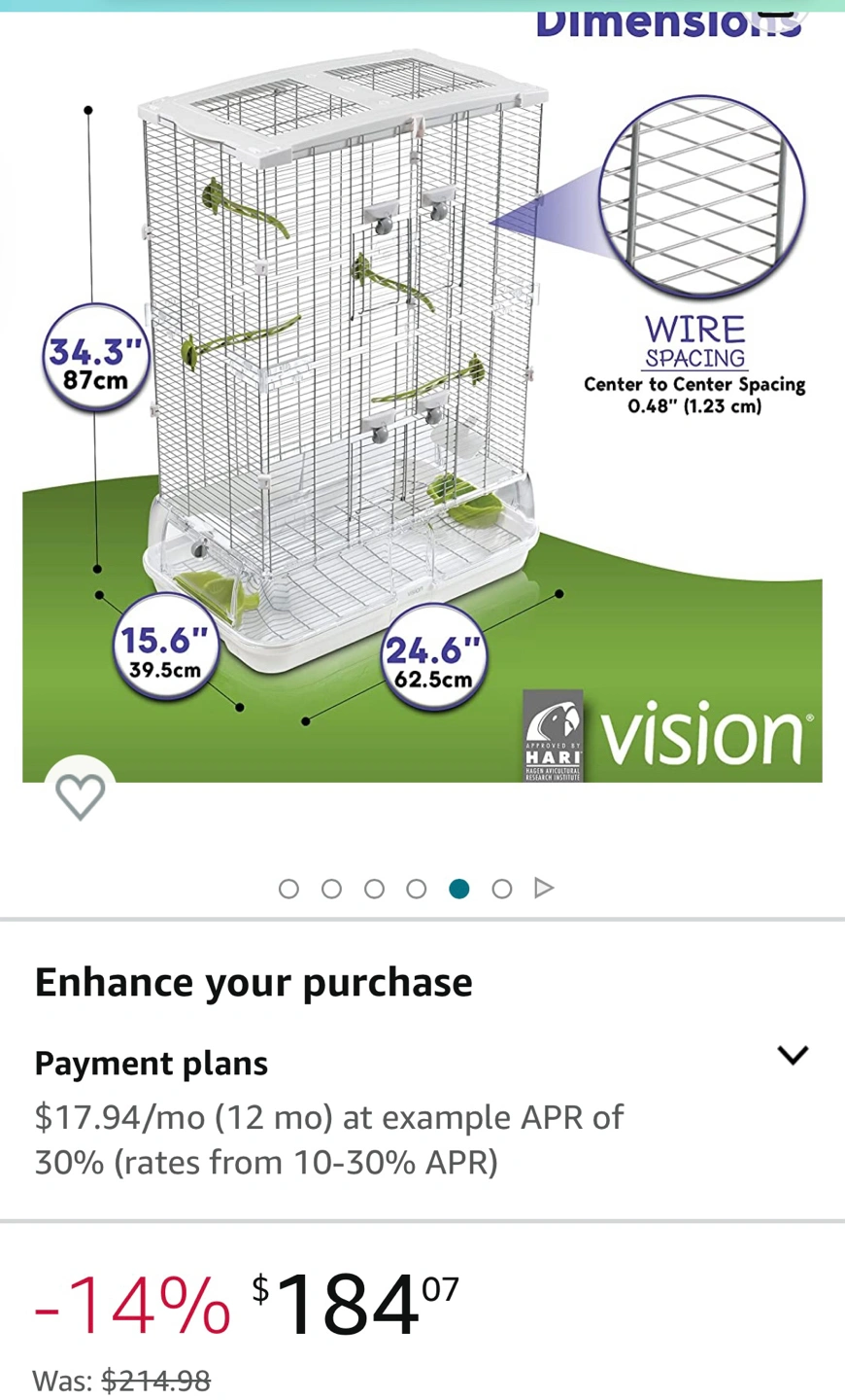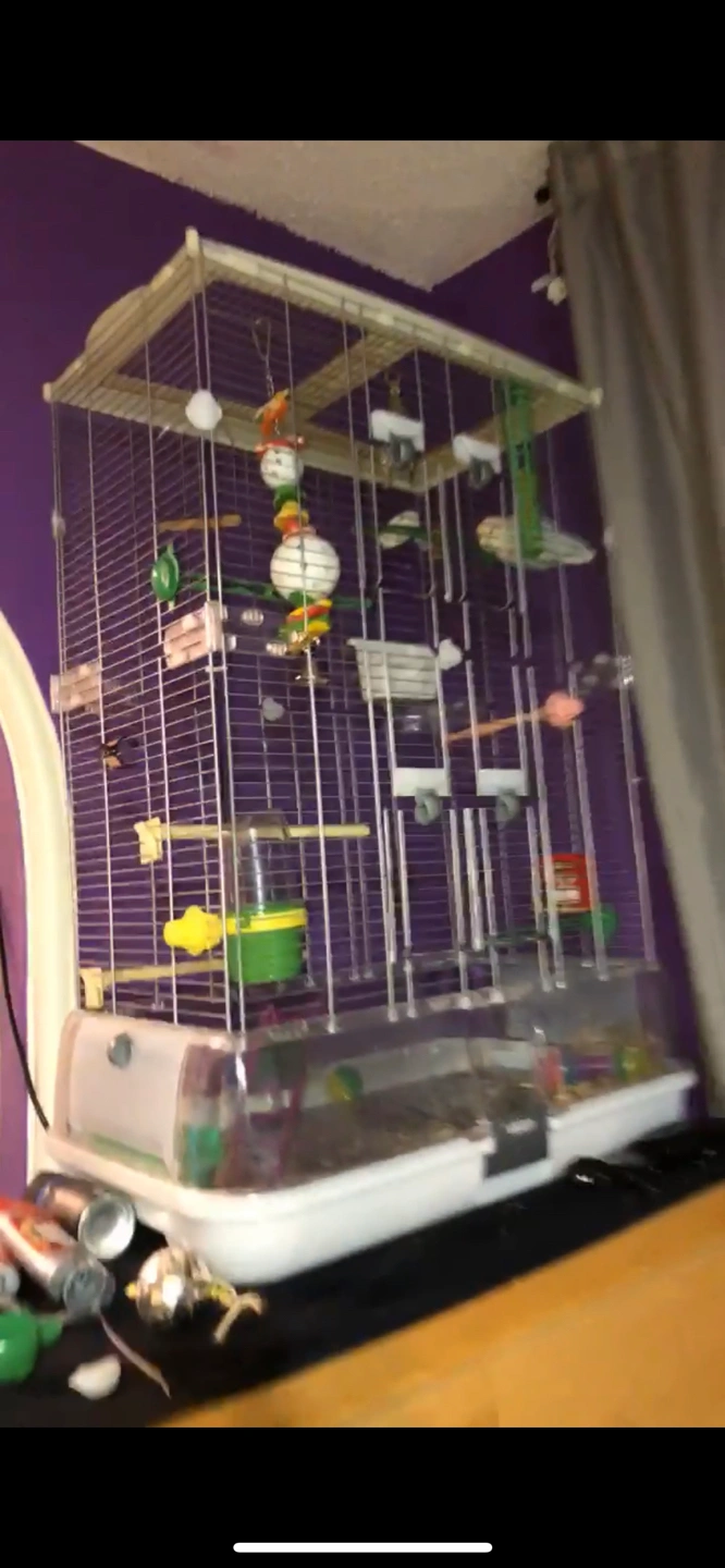 Cage also comes with extra toys, bowls, perches, etc. Some accessories haven’t even been used.