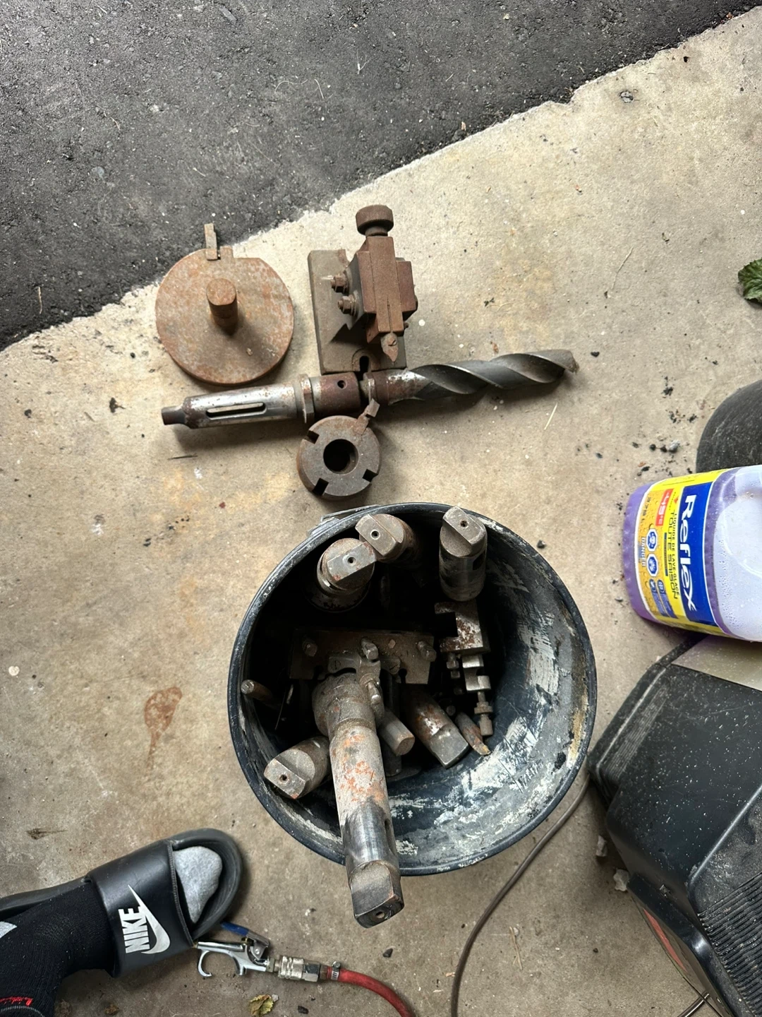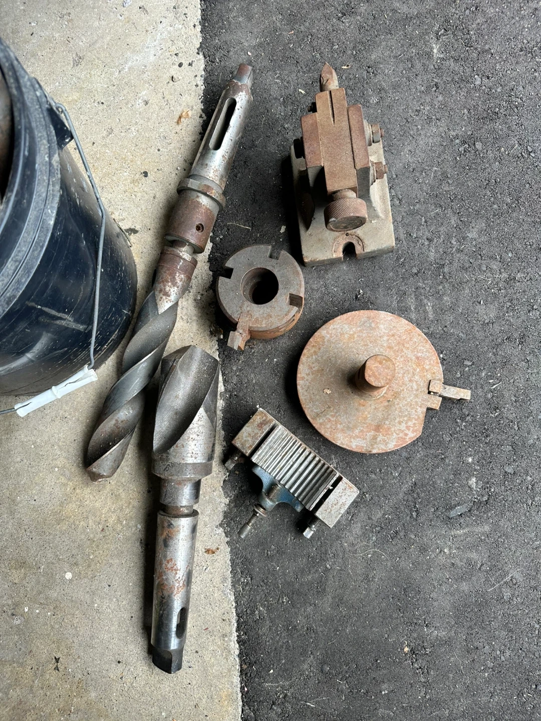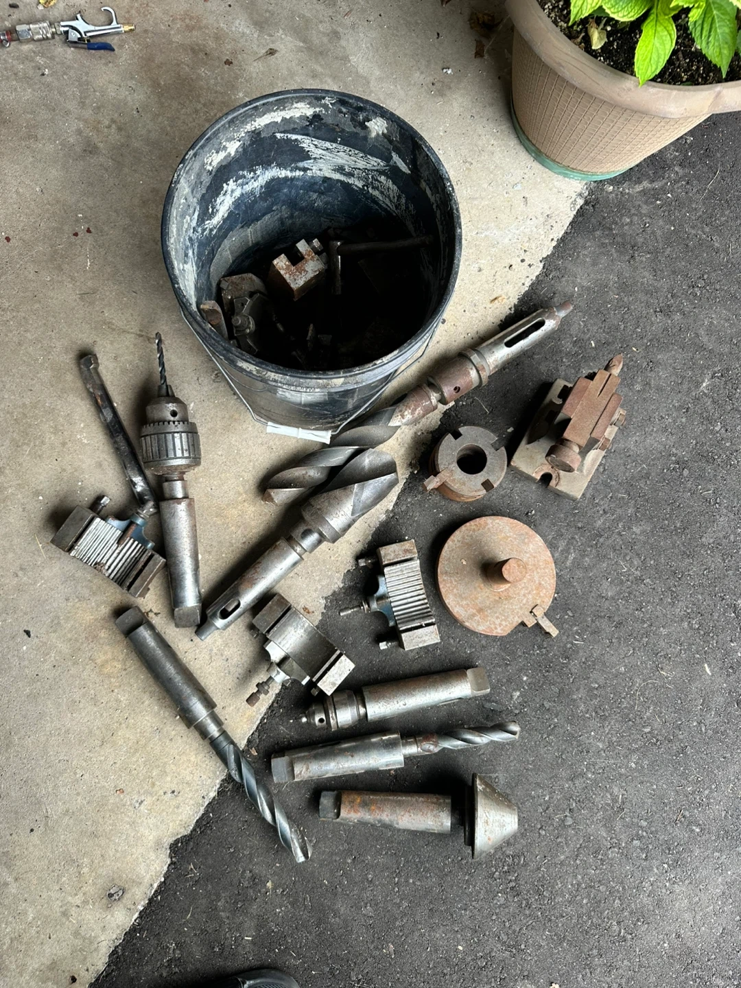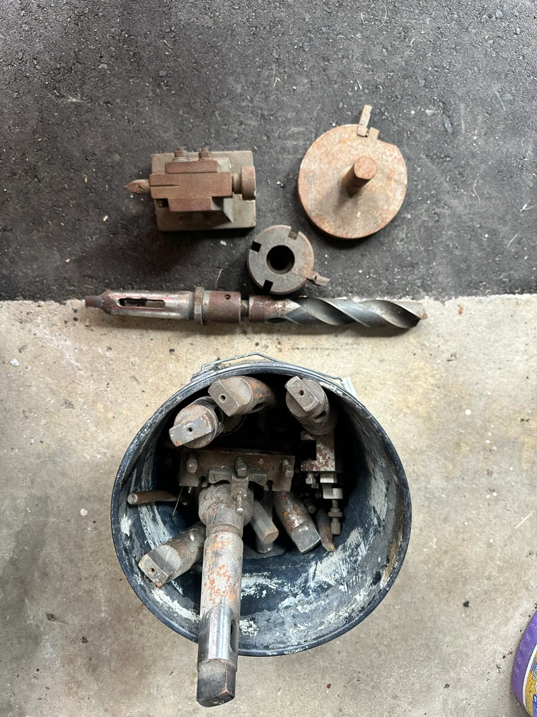 all stored together in a bucket. Perfect for anyone with a lathe, milling machine, or large drill press.