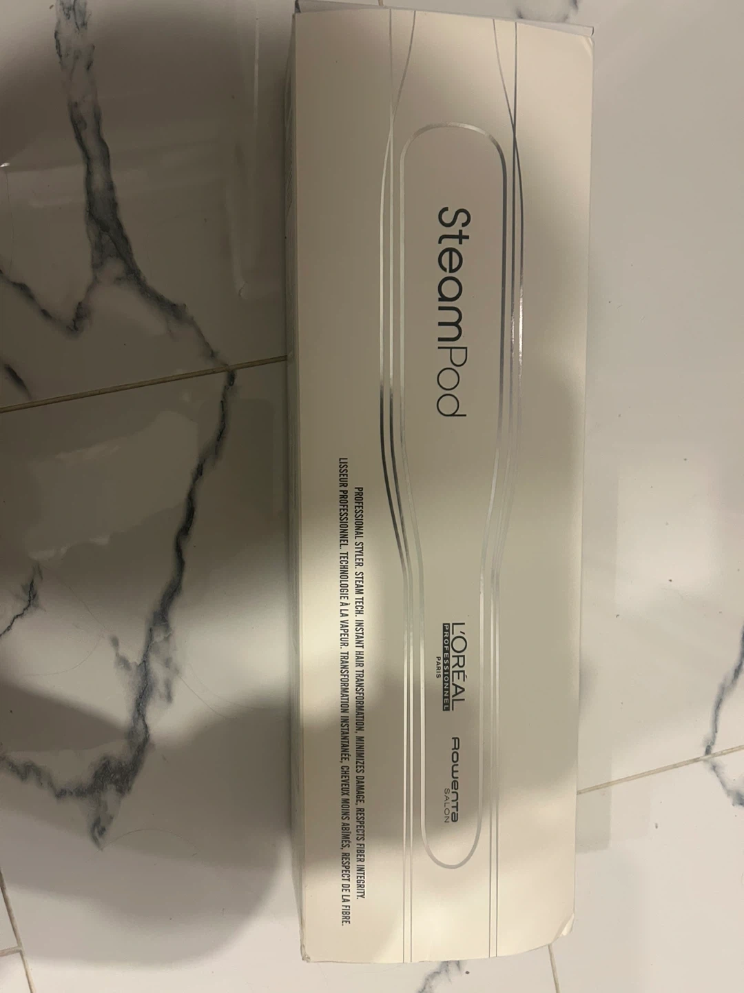 This is the L'Oréal SteamPod professional steam styler. It uses steam technology for hair transformation. Includes the original box.