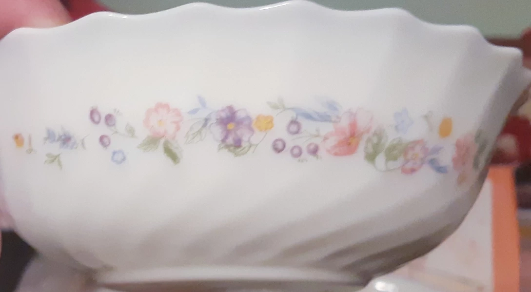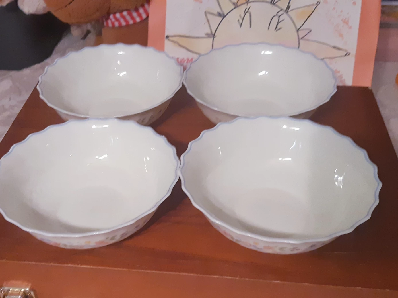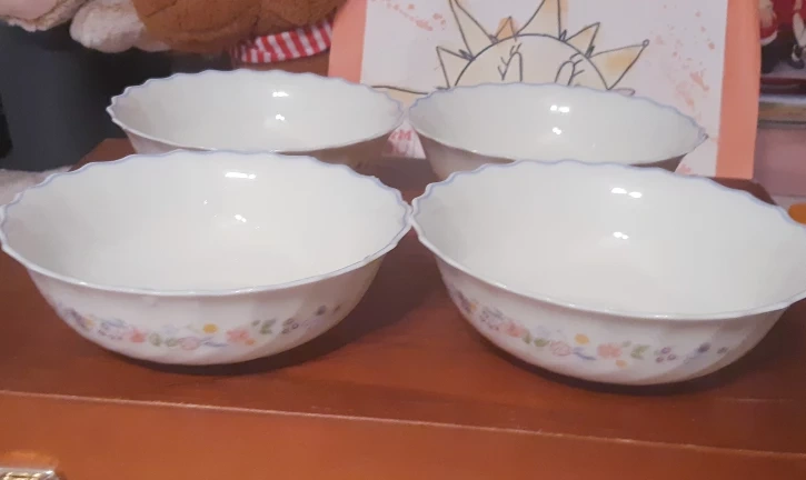 Set of four Arcopa France bowls in great condition! These bowls feature a delicate floral design around the rim. Perfect for everyday use or to add a touch of vintage charm to your table setting