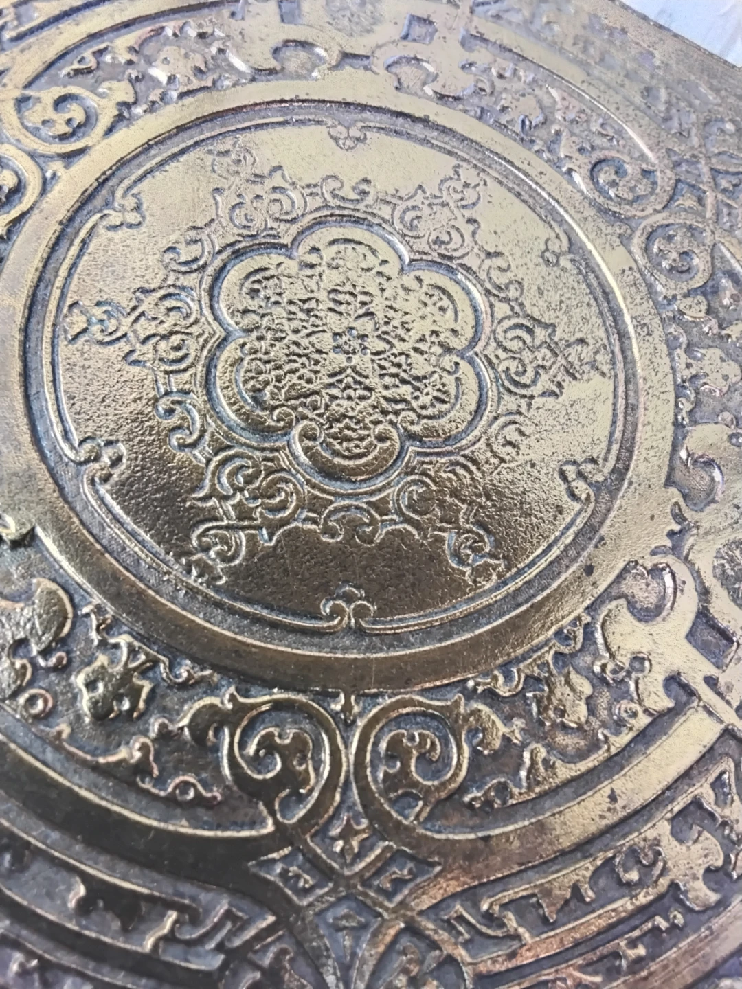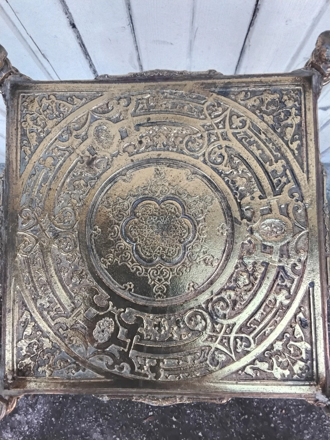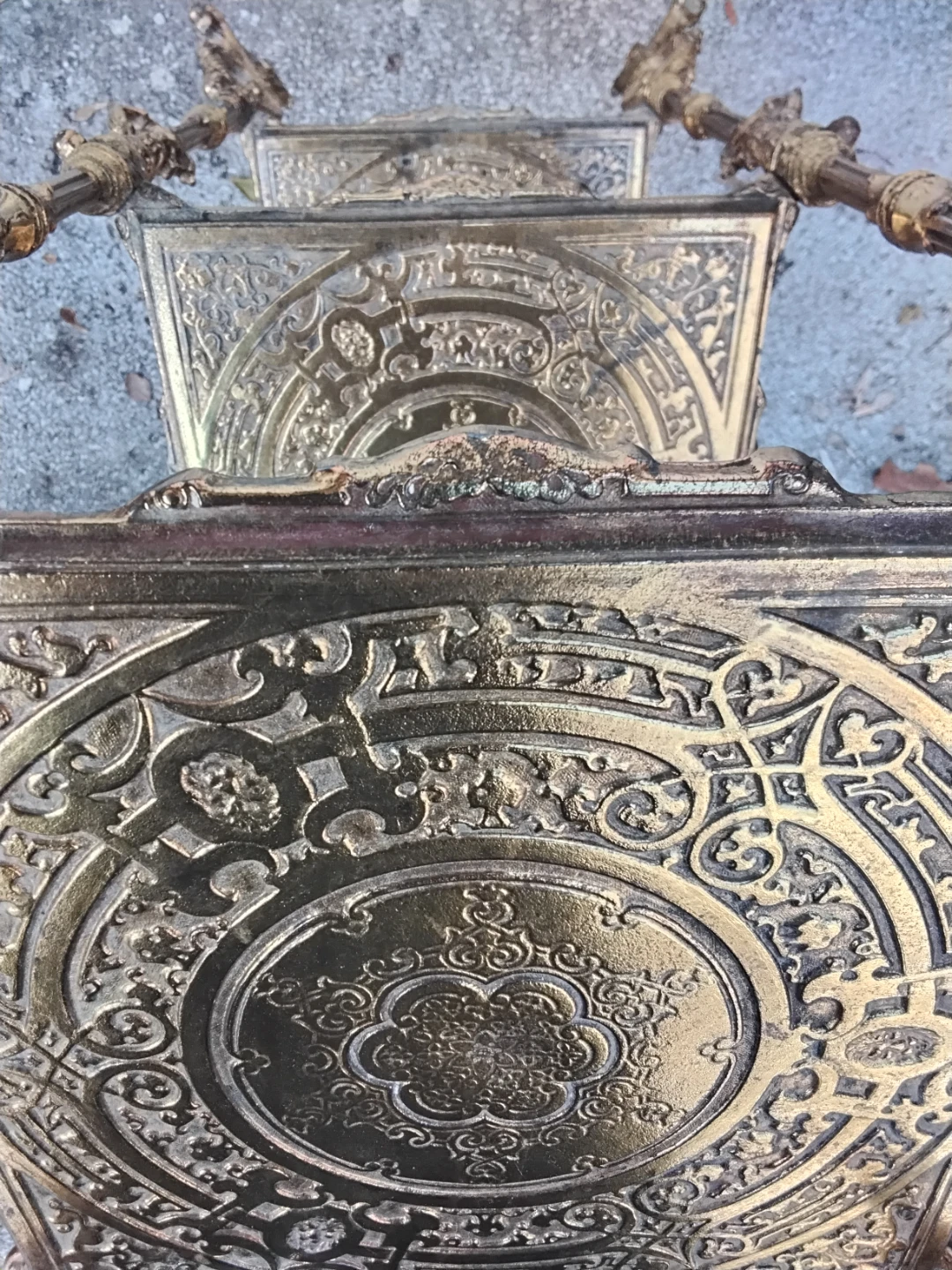 ✨️Selling a unique SUPER VINTAGE antique cast iron Figural Renaissance brass 3-tiered (plant) table! It features detailed engravings on each tier and decorative figurines on the corners and legs. This piece would add a touch of antique charm to any room! You can put other things on this table other than plants, as well! 👌