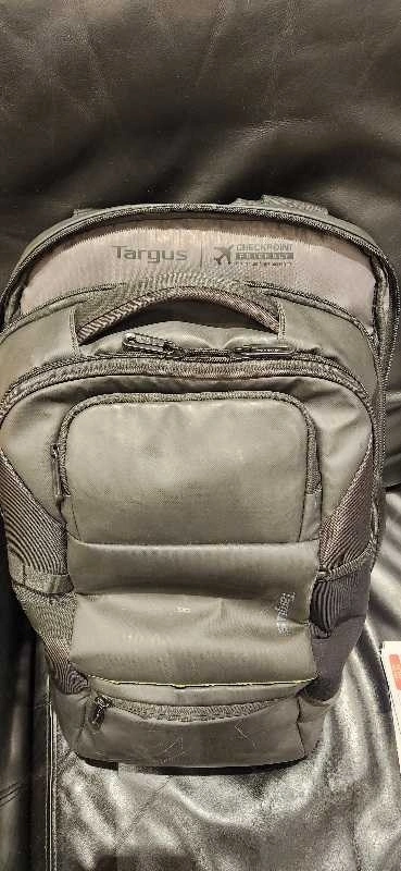This Targus backpack is designed to protect laptops with screens up to 15.6 inches and offers plenty of storage space. This backpack is used, but still in good condition, making it a reliable choice for daily use. It features a padded laptop compartment, multiple accessory pockets, durable construction, and comfortable shoulder straps. If the ad's up, the backpack's available!