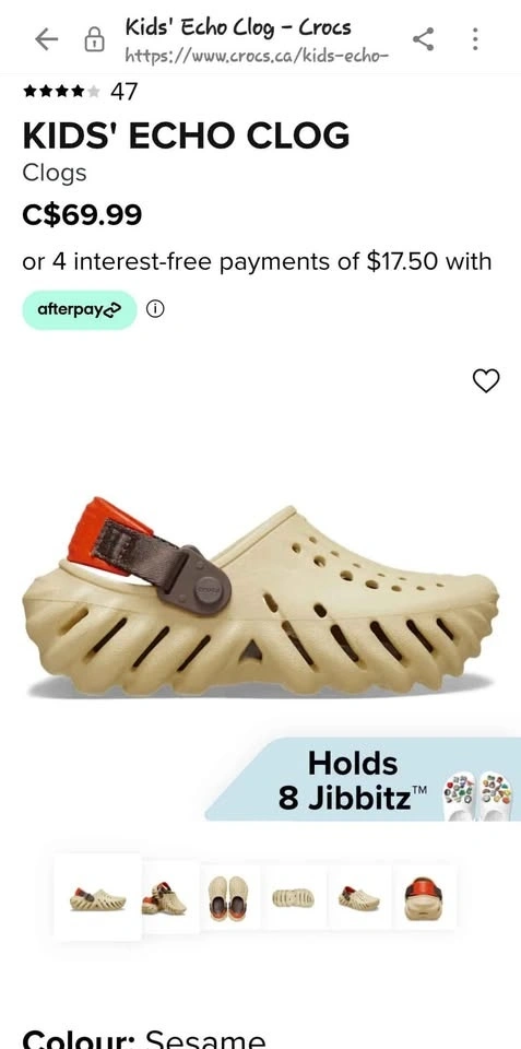 Buy & SellSesame colour - echo crocs kid j4Sesame colour - echo crocs kid j4$45Run bigger in size, can fit women size 6. Pick up Winston churchill and DerryWHERE TO MEETCheck LocationView MapSELLERkatherineBrampton W211 review1 chats·1 favorites·19 viewsSEND CHAT TO SELLERHi katherine! I’m interested in your listing.Hi katherine! I’m interested in your listing.Get the Karrot app to chatSign In to chat