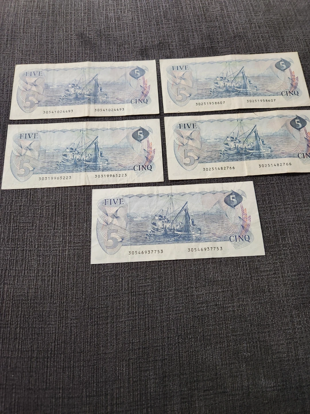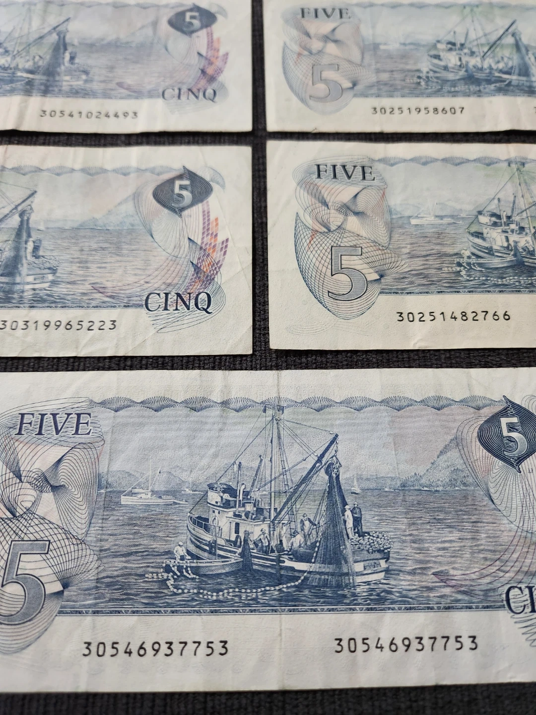 Canada 5 Dollar Bills (x5)- Years 1979