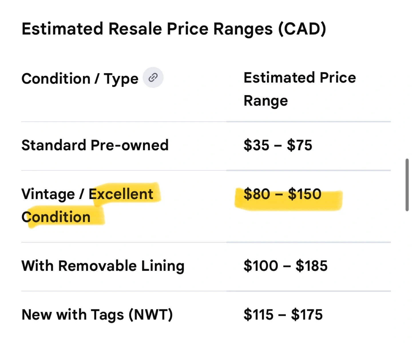 It’s in fantastic condition and worn only a handful of times. Coats in this condition can have a resale value of $80 to $150.