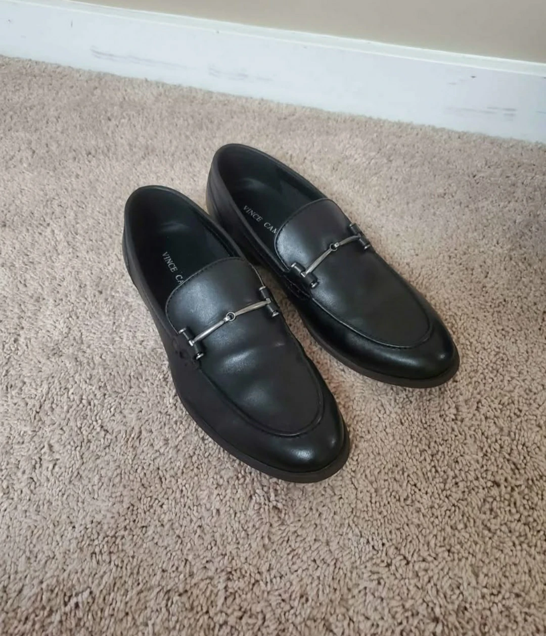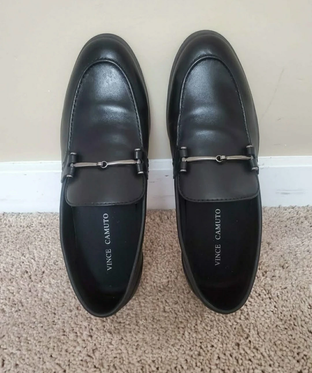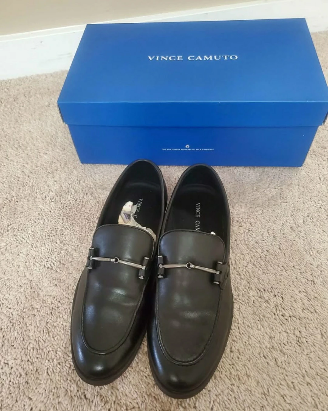These are a pair of Vince Camuto VY-IMMON loafers in black, size 8.5M. They come with the original box!