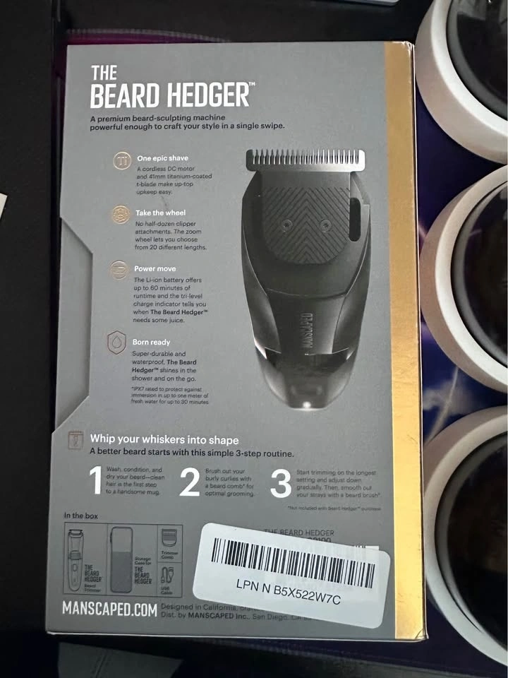 Brand new with box. This is a precision beard trimmer. Comes with an AC adapter, USB-C cable, length-setting comb attachment, and a hard-shell, water-resistant travel case. Cordless for precision facial hair grooming.