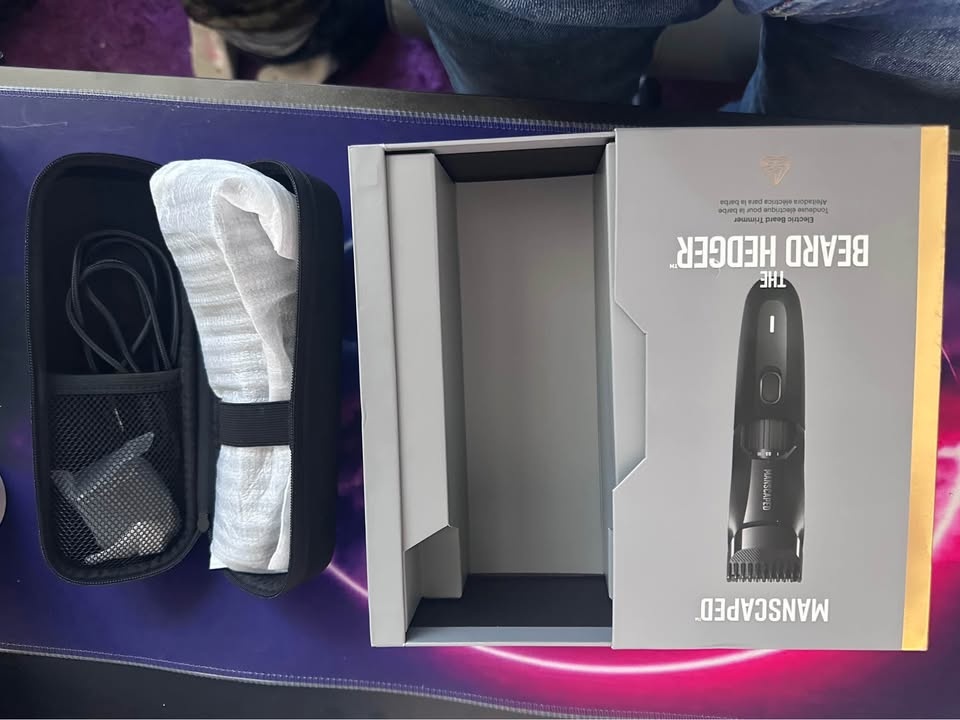 Brand new with box. This is a precision beard trimmer. Comes with an AC adapter, USB-C cable, length-setting comb attachment, and a hard-shell, water-resistant travel case. Cordless for precision facial hair grooming.