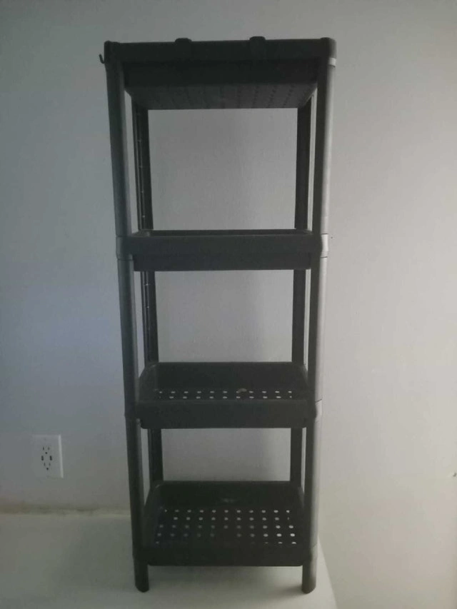 Organize your space with this versatile 4-tier shelf! It's perfect for adding extra storage to any room. This shelving unit is used but in good condition, ready to help keep your items neatly arranged.