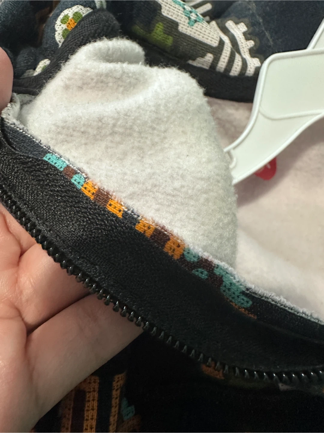 Cozy zip-up hoodie for babies with a cool all-over print. It's fleece-lined for extra warmth. Has front pockets.