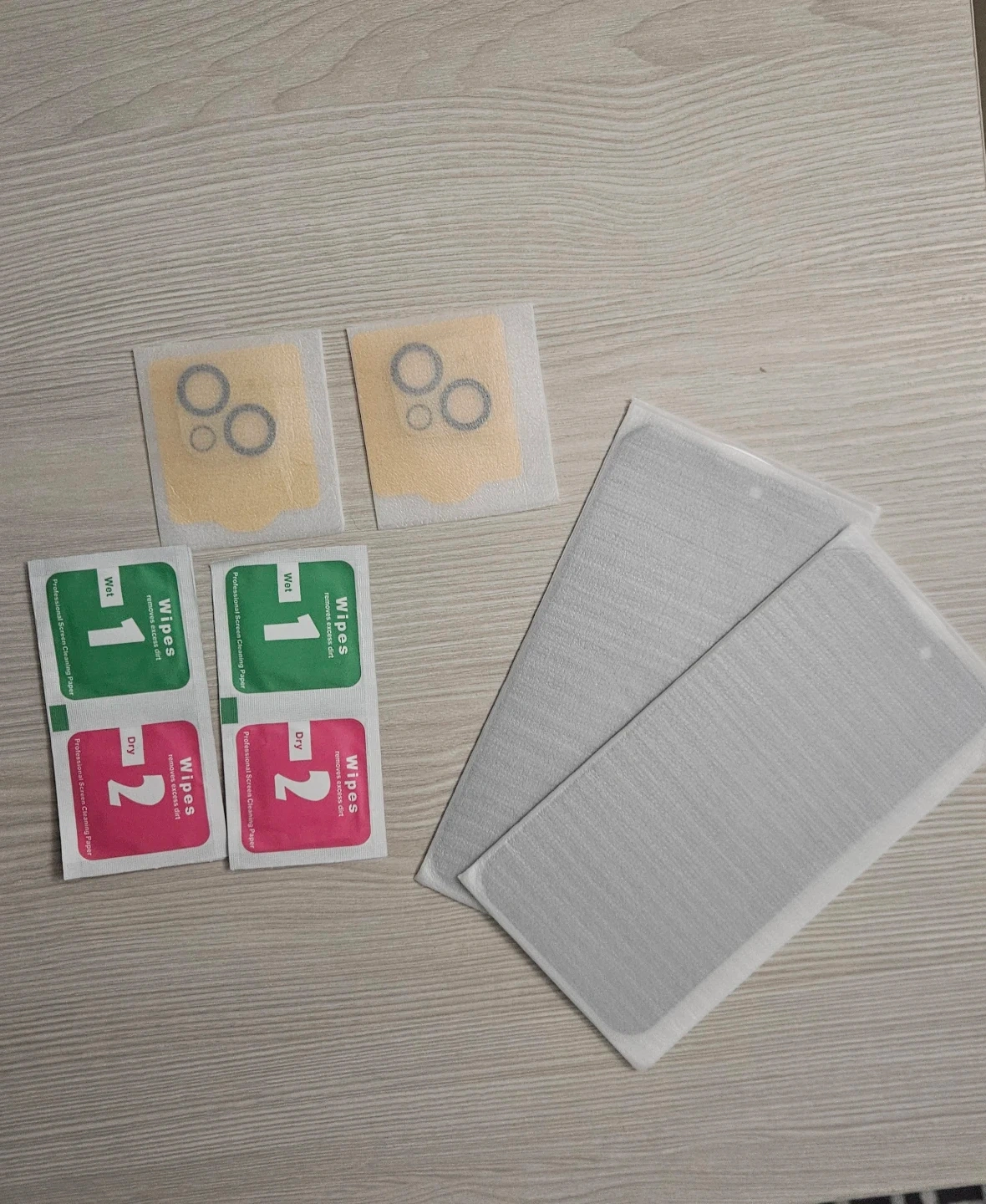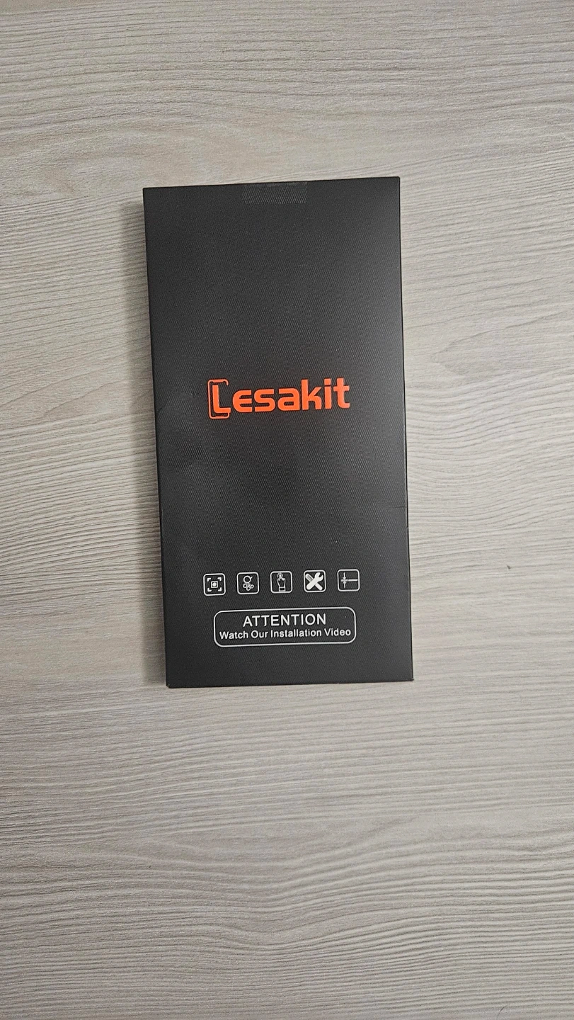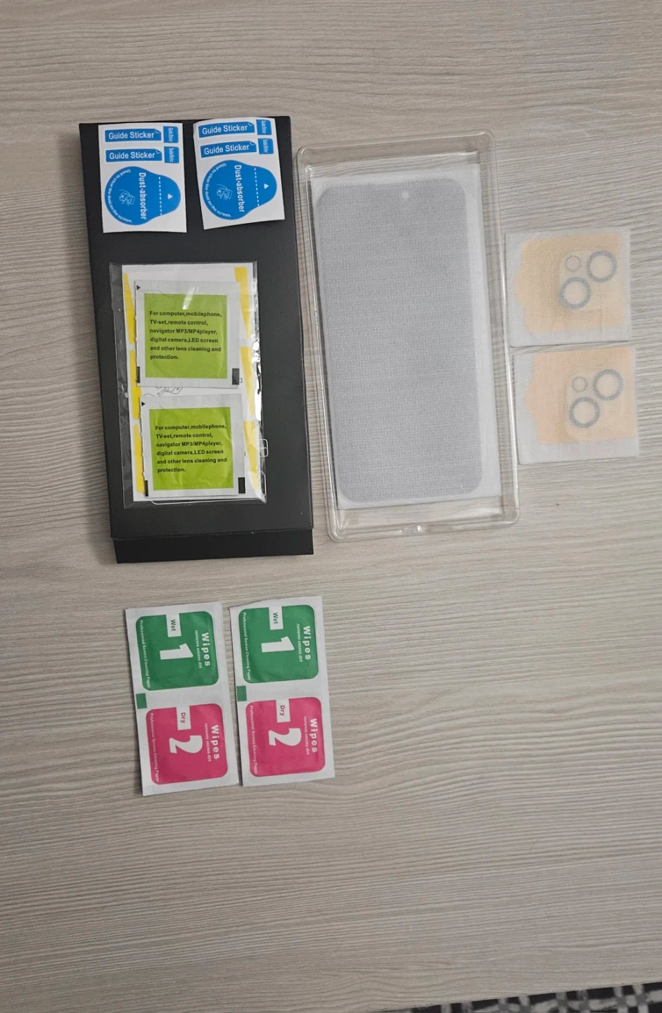 This is a Lesakit screen protector kit for IPhone 15 Plus with two protectors. It includes guide stickers, wet and dry wipes, and camera lens protectors. Offers protection for your device's screen and cameras.