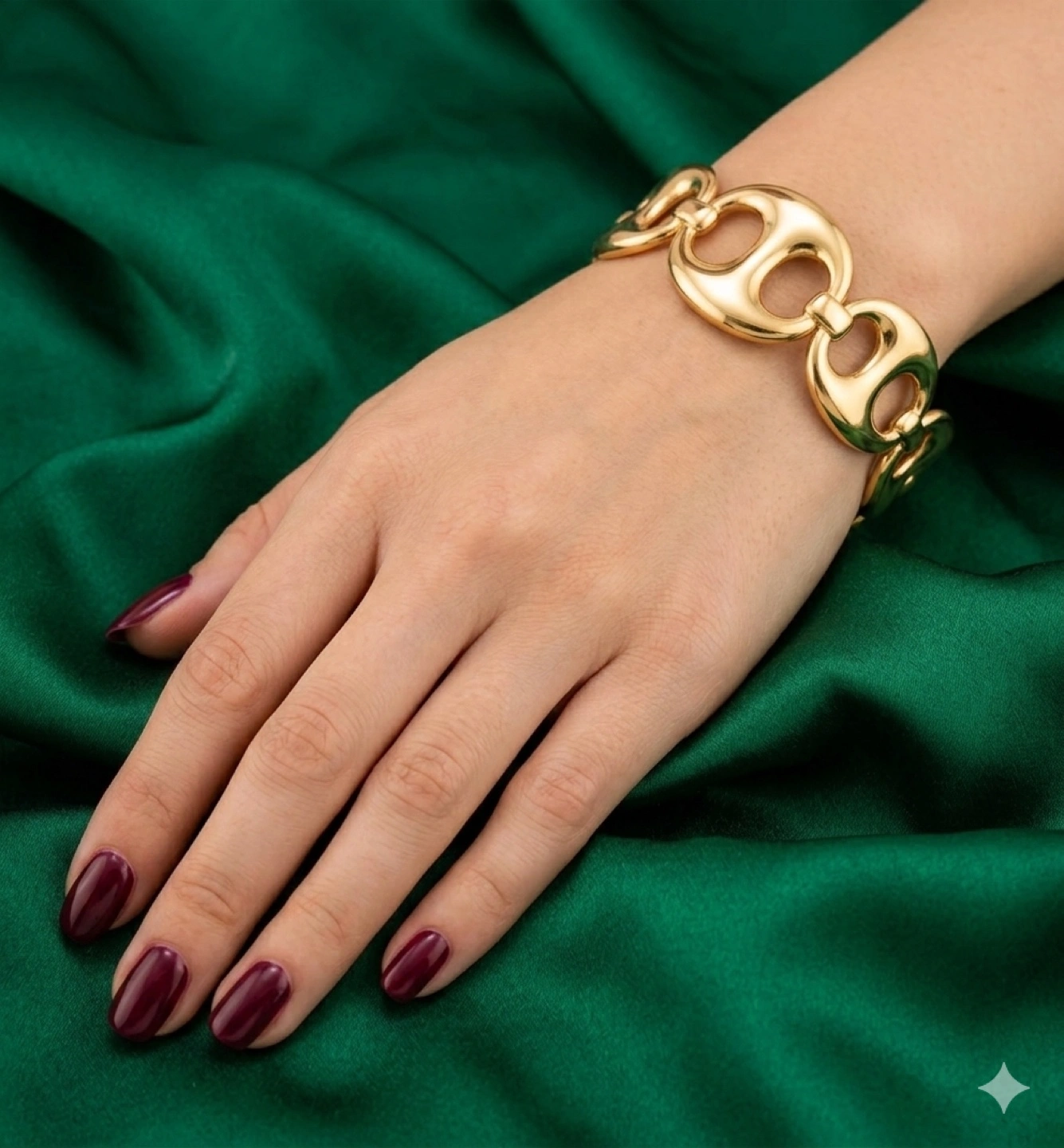 This bold gold-tone bracelet features interlocking oval links. It's designed for a comfortable fit. An eye-catching accessory for any occasion!