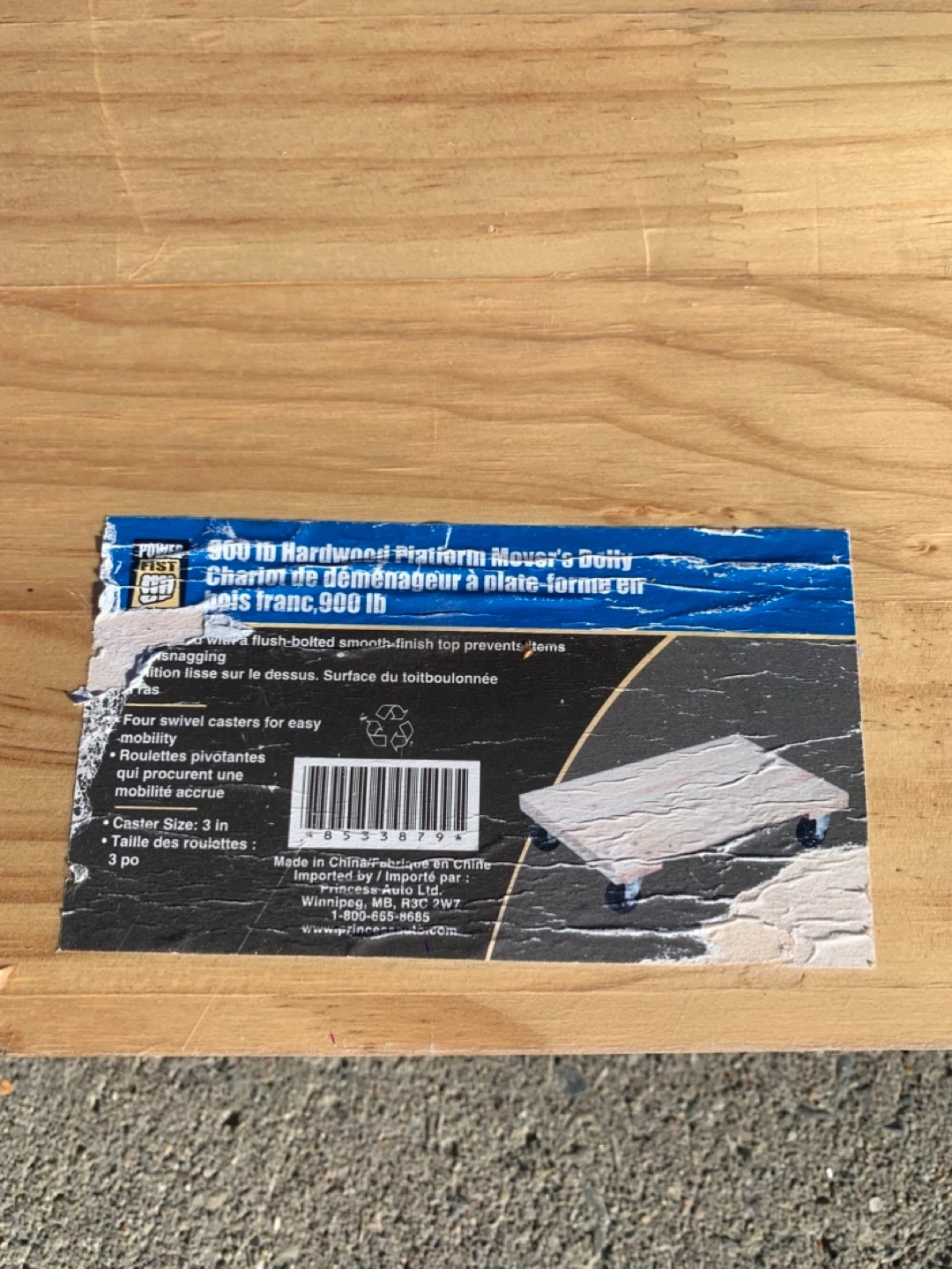 This is a 900 lb capacity hardwood platform mover's dolly. It features four swivel casters for easy mobility. The dolly has a flush-bolted smooth-finish top to prevent snagging. It's great for moving heavy furniture and appliances!