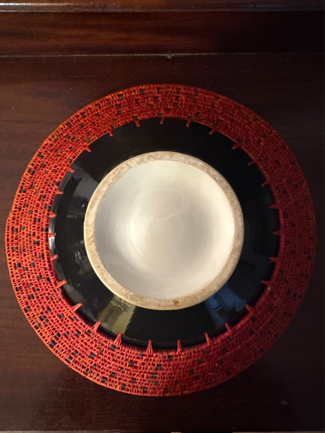 Decorative Red Woven Bowl with Black Interior