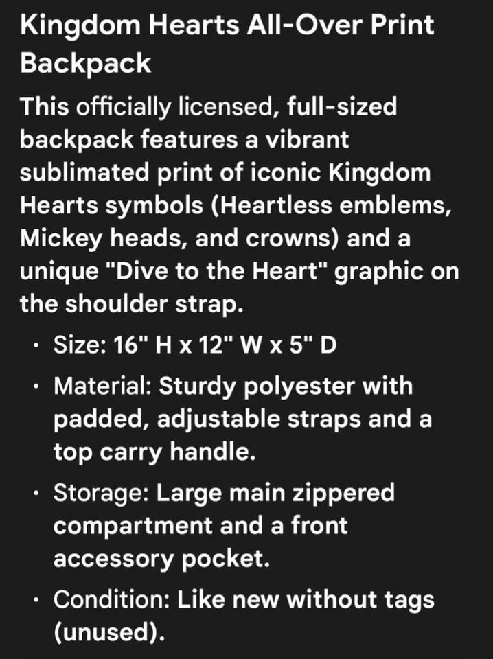 Kingdom Hearts Disney Backpack