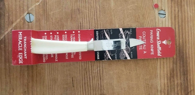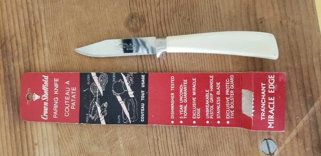 Up for sell we have these Vintage Regent Crown Sheffield Paring Knife made is England . They are 7" long the blade is 3" long asking $10 each i have 8 in total pick up on beaverbrook lane in kanata thank you