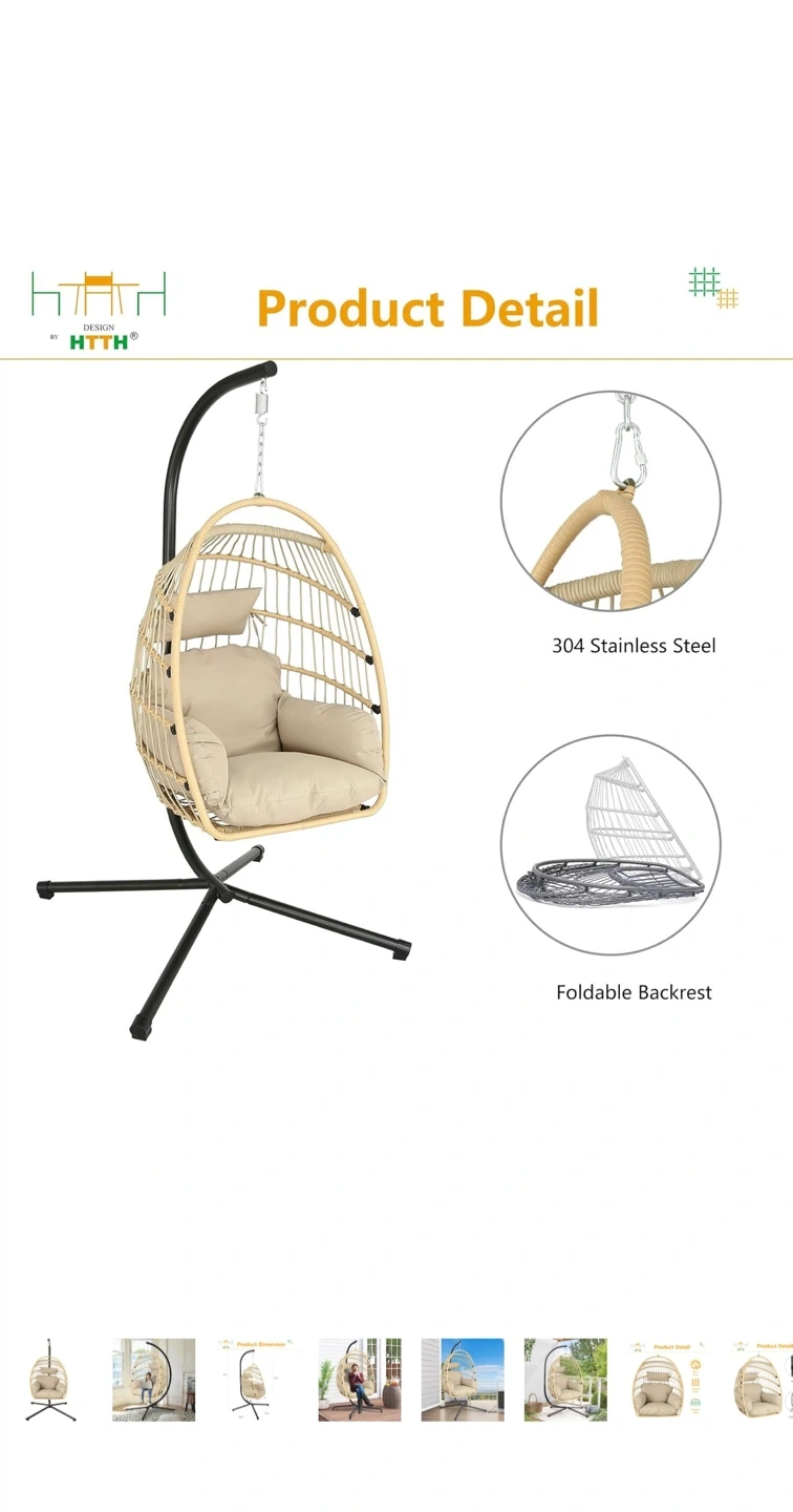 HTTH Hanging Egg Chair with Stand and Cushion