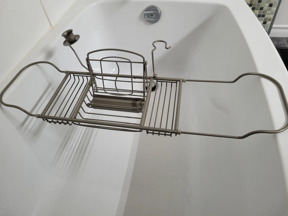 Expandable Bath caddy. For book/Ipad (candle and wine- optional) $20. Only used a couple of times. East Regina. Cash only.