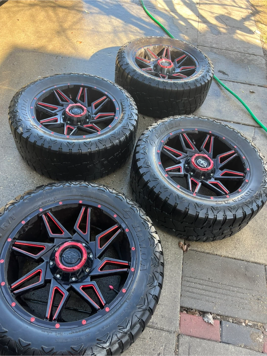 XF OFFROAD XF-218 Series Wheels - Gloss Black Red Milling rims. These wheels feature a black finish with red accents and are 20 X 12 inches. They're a great upgrade for your truck or SUV