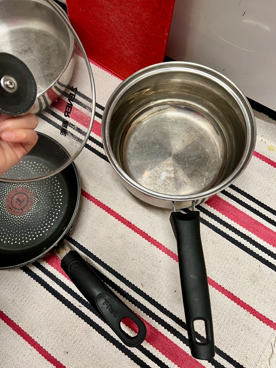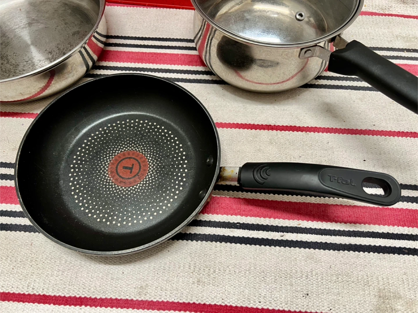 T-fal Frying Pan, Stainless Steel Pot & Cutting Board