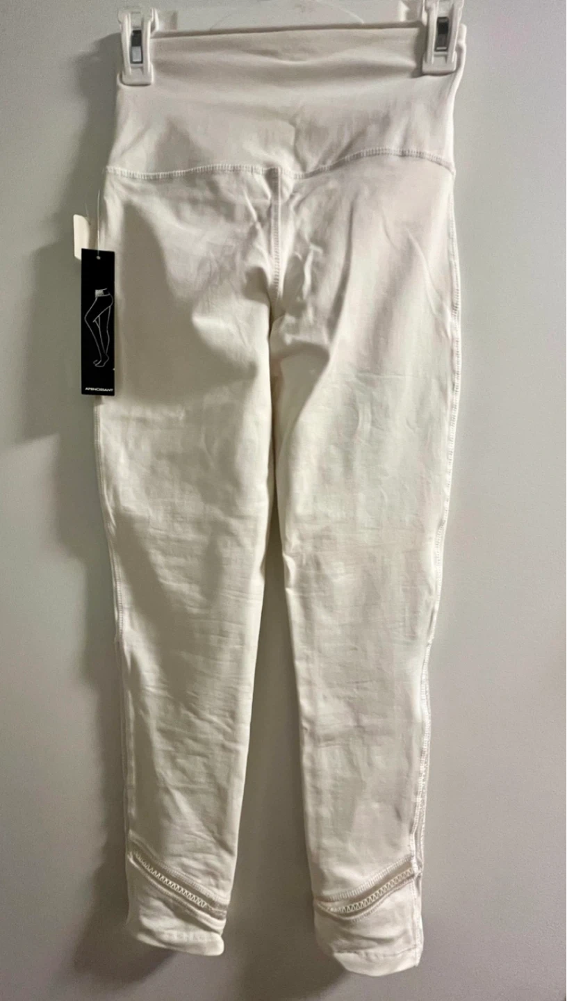 These are a pair of Tribal leggings in size XS. They are white and have a stylish design at the ankles. The style number is 33630-5303. Originally bought for $75 plus tax