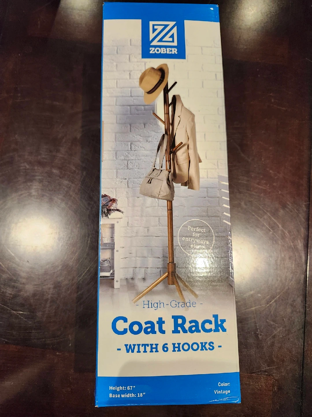 Selling a brand new Zober coat rack! It's a vintage style with a modern tree silhouette and has 6 sturdy hooks for coats, hats, and handbags. - Smooth lacquered oak wood - Sturdy legs ensure proper balance - Assembles easily and disassembles - Height: 67" - Base width: 18" Non smoking home. Pick up at Elmbrook Park Library in Etobicoke. Possible delivery to North York, Mississauga or Milton depending on my schedule for an extra fee.