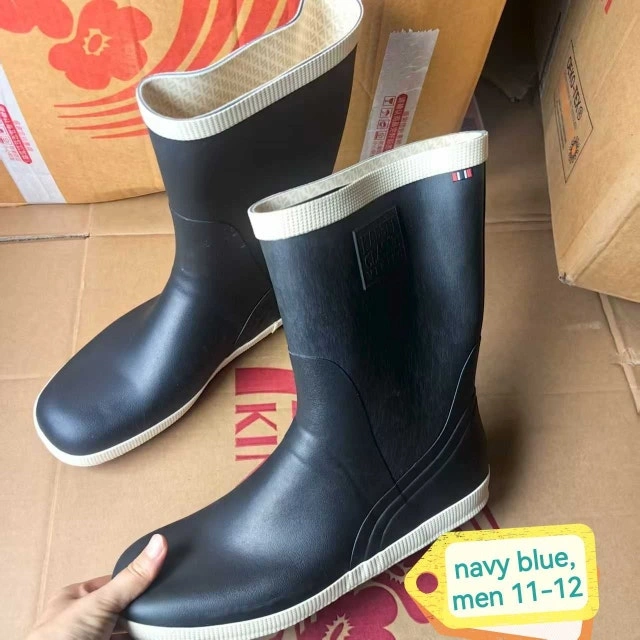Step into style and practicality with these Helly Hansen navy blue rain boots, sized for men's 11-12. These boots are in used condition, ready to tackle any wet weather with a touch of nautical flair. Perfect for a stroll in the city or a trek in the country.