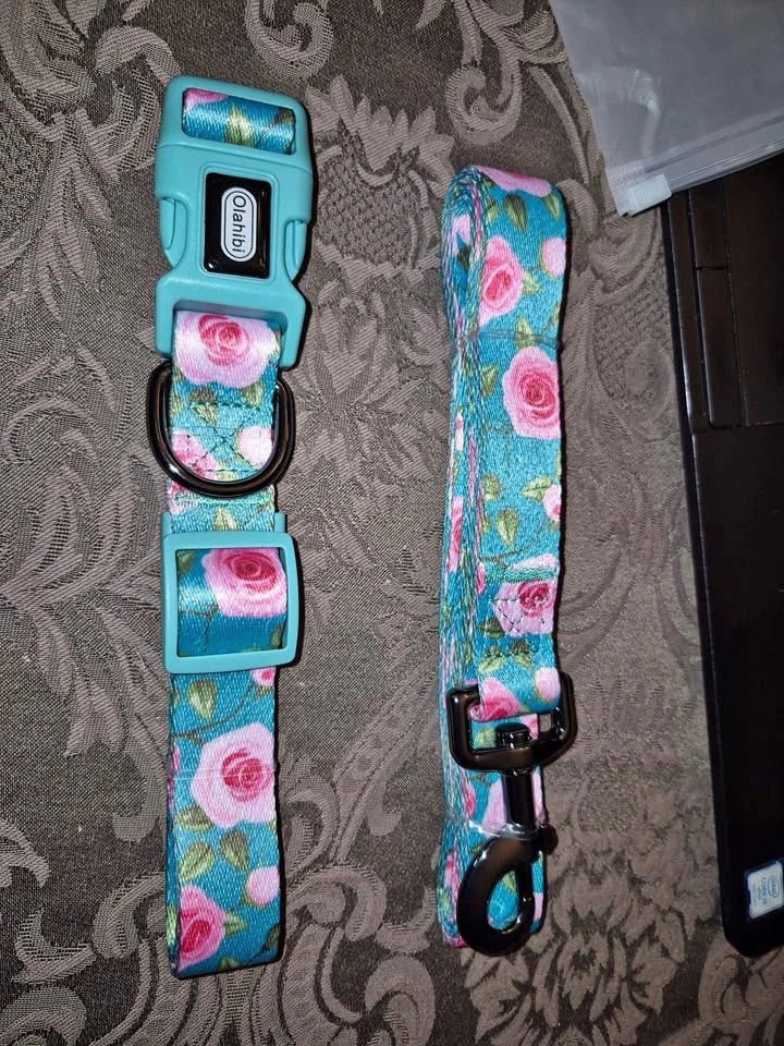Dog Collar Leash Set, Floral Pattern - Brand New