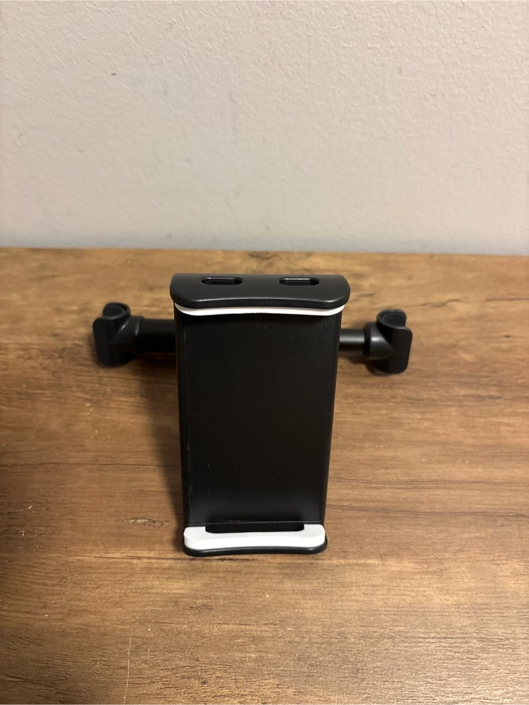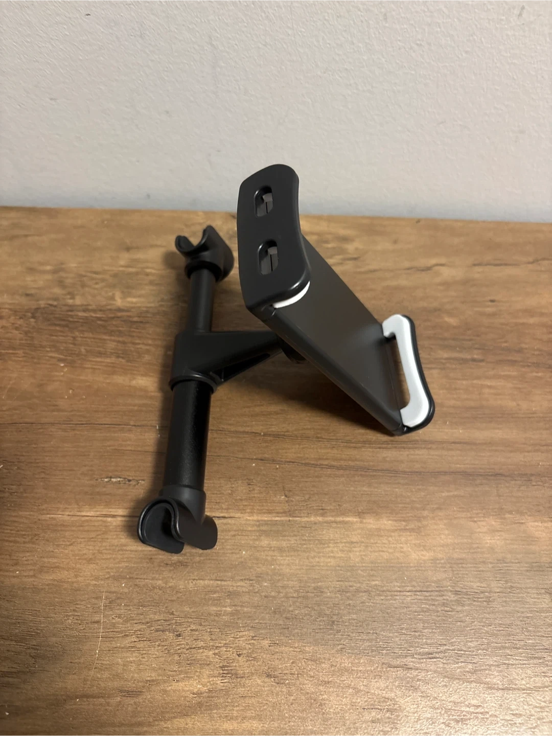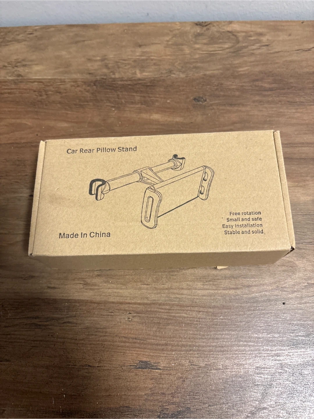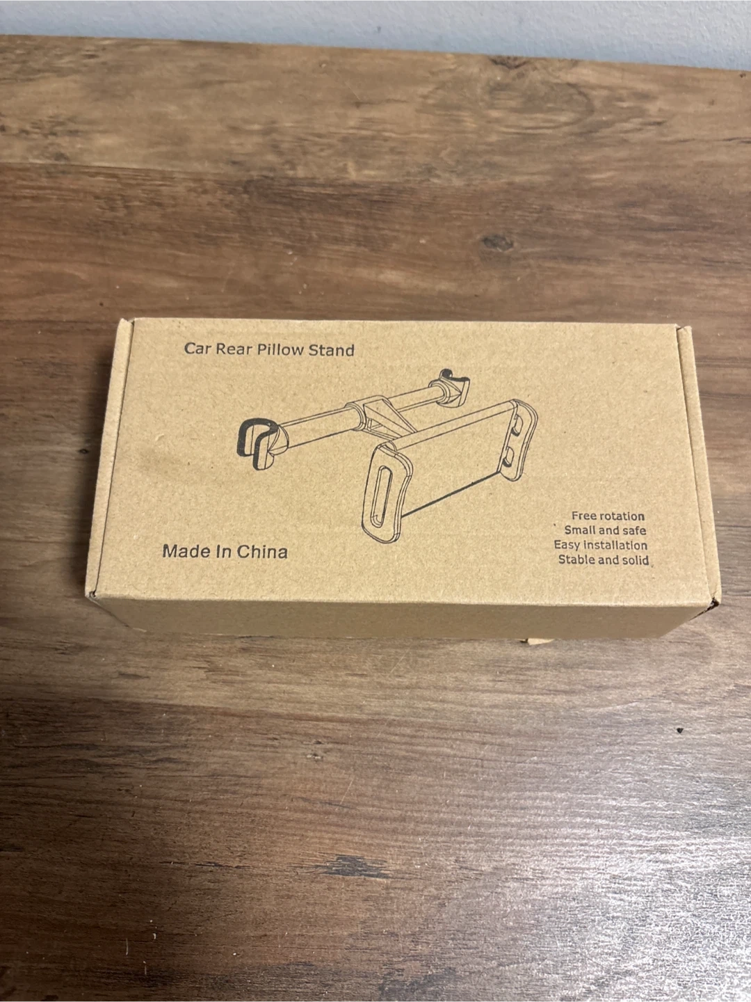 This is a car rear pillow stand for holding phones or tablets. It offers free rotation, easy installation, and a stable, solid design. It's small and safe for use.