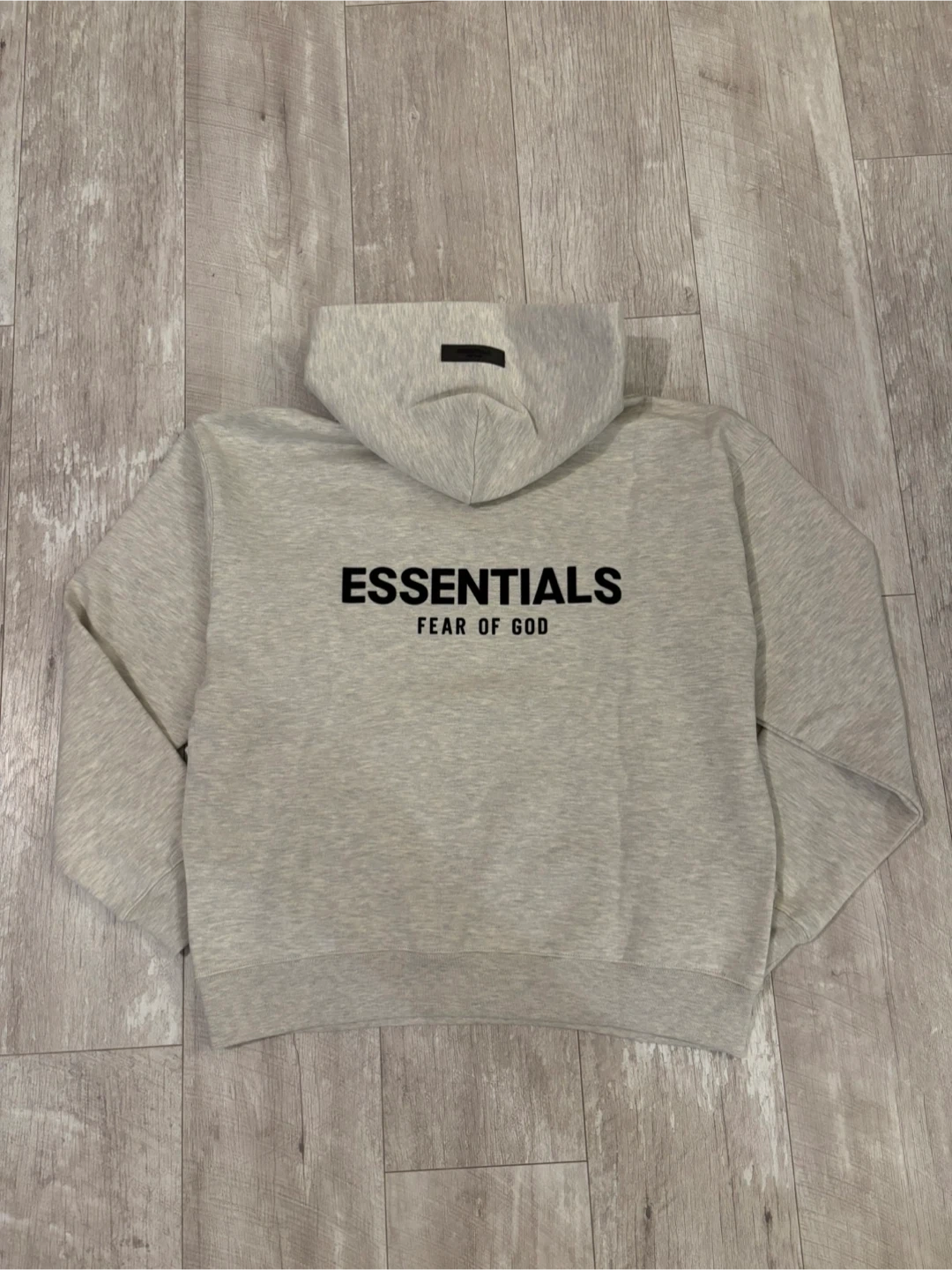 Selling an Essentials Fear of God hoodie in grey. It features the Essentials logo on the front and the Fear of God branding. A comfortable and stylish piece for everyday wear!