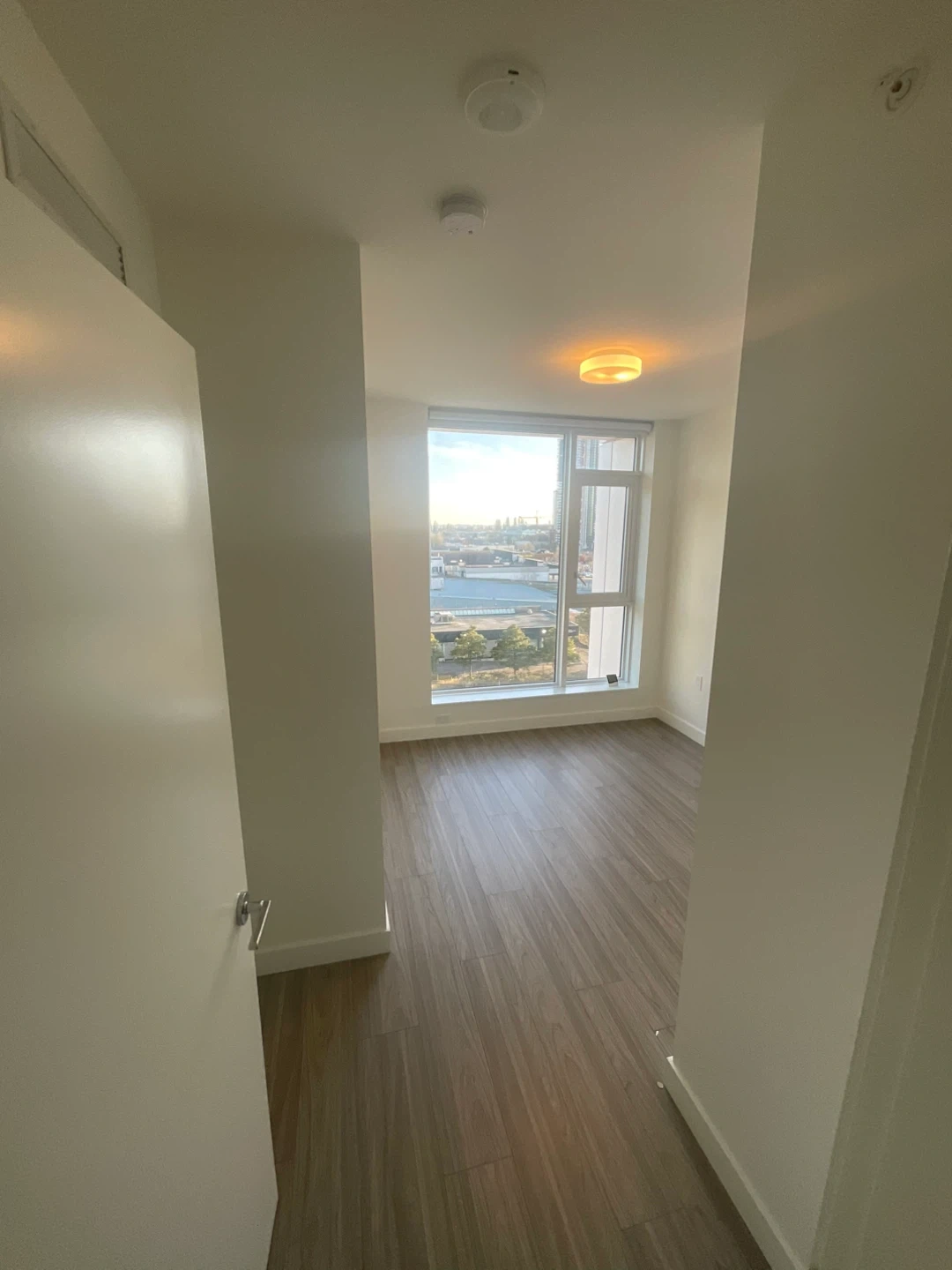 Clean, unfurnished apartment unit available. Features spacious rooms with hardwood-style flooring and large windows. Includes a full bathroom with a bathtub and shower. A nice balcony