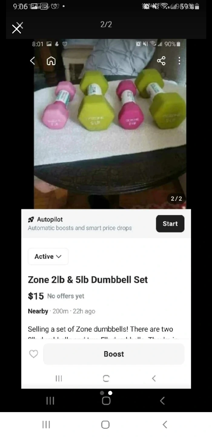 47Selling a set of Zone dumbbells! There are two 2lb and two 5lb dumbbells. Great for home workouts!