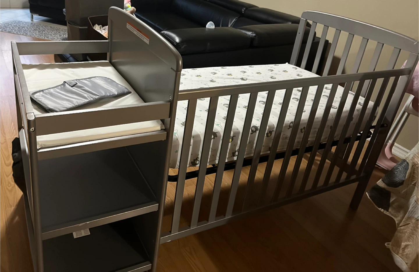 Baby crib with changing table and mattress