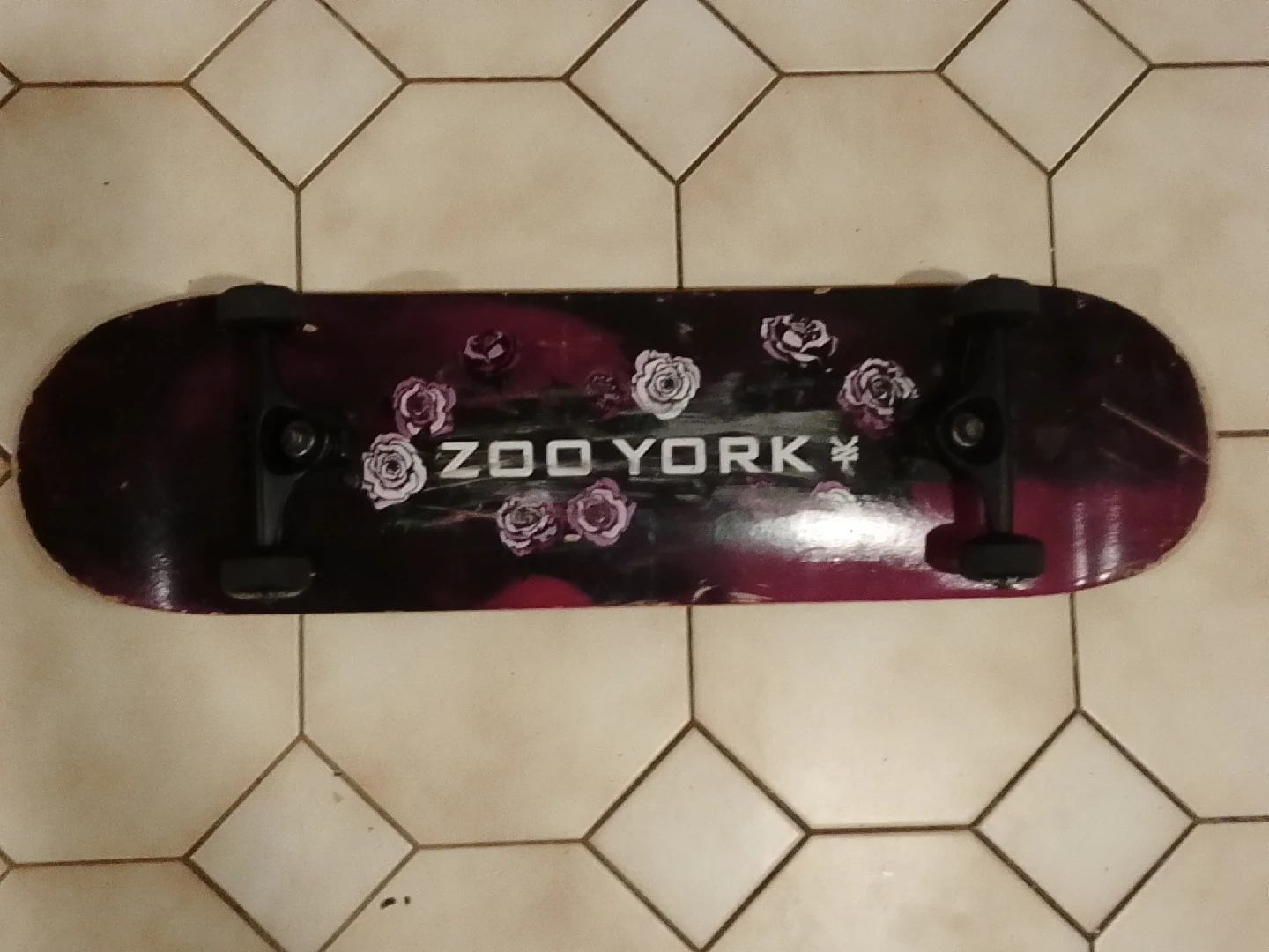 774Selling a used Zoo York skateboard. It has some wear and tear from use, but it's still in good working condition. The board features a unique graphic design with roses and the Zoo York logo. Great for beginners or experienced skaters!