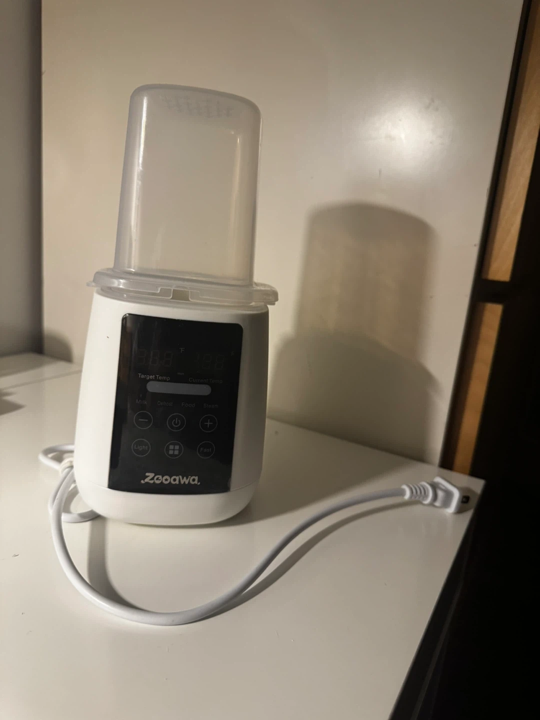 Selling a Zooawa baby bottle warmer! It's in great condition and ready to use. It features multiple functions like milk warming, defrosting, food heating, and steaming, making it super versatile for baby feeding needs