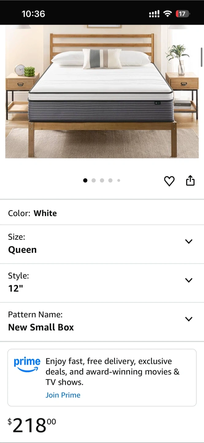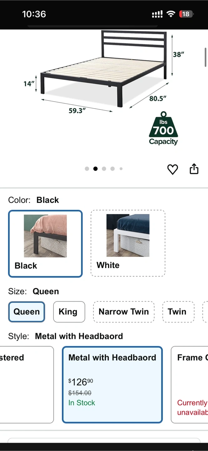 [A set of two] Zinus Queen Mattress & Black Metal Bed Frame