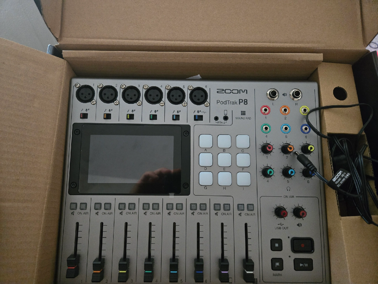 10Selling a Zoom PodTrak P8 podcast recorder that's in like-new condition! It comes with the original box and all the included components. This is the ultimate workstation for podcasters, featuring a touchscreen interface, 6 mic inputs, 6 headphone outputs, built-in sound pads, and mix-minus for phone interviews. Perfect for anyone looking to create professional-quality podcasts!
